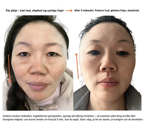 Natur serum satte gang i reparationen → Masker gav hudens energi tilbage → Dagligt plejesæt låste resultaterne fast → Blåt lys-beskyttelse holdt min hud frisk foran skærmen→ UV-beskyttelse gjorde, at intet gik tabt. Resultatet? Hud, der stråler med naturlig glød – og en følelse af selvsikkerhed, jeg ikke vil bytte for noget."